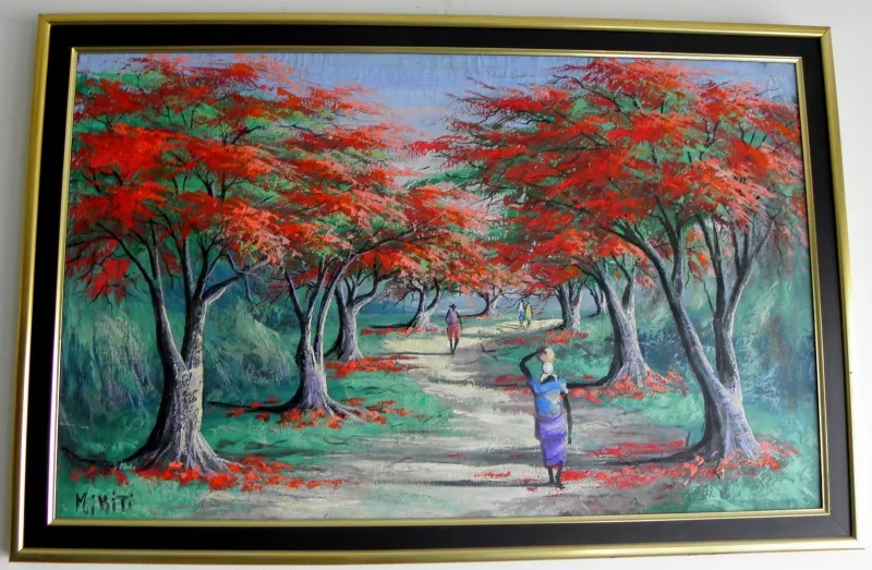 Originalana afrička umetnička slika, ulje na platnu, poreklo Južna Afrika