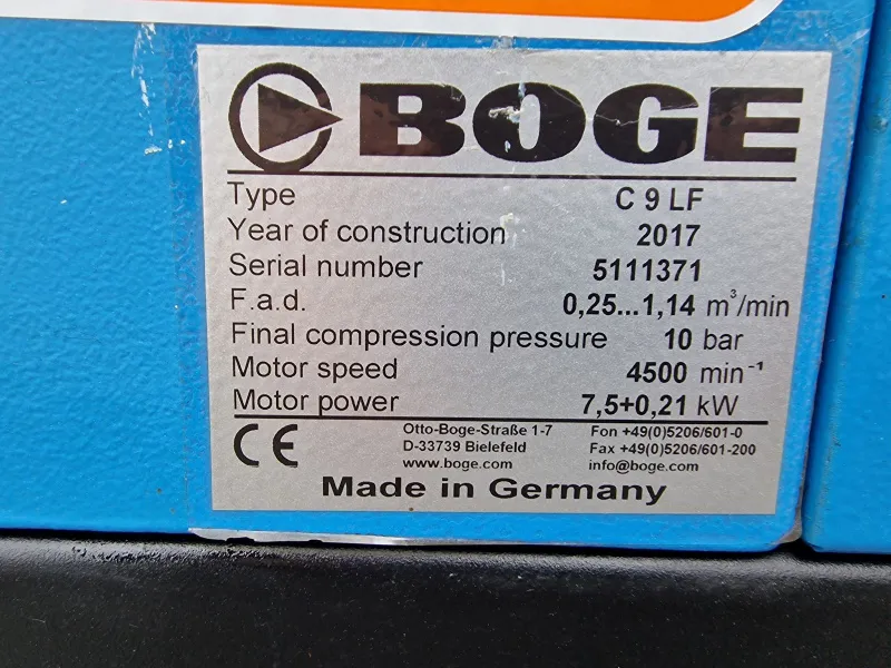 Polovan vijčani kompresor , sa FREKVENTNOM REGULACIJOM, BOGE C 9 LF - 7, 5 kW