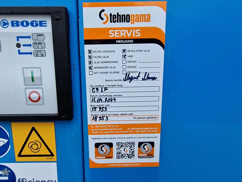 Polovan, kompletno REMONTOVAN, vijčani kompresor BOGE C 15 LDR/350 - 10 bar